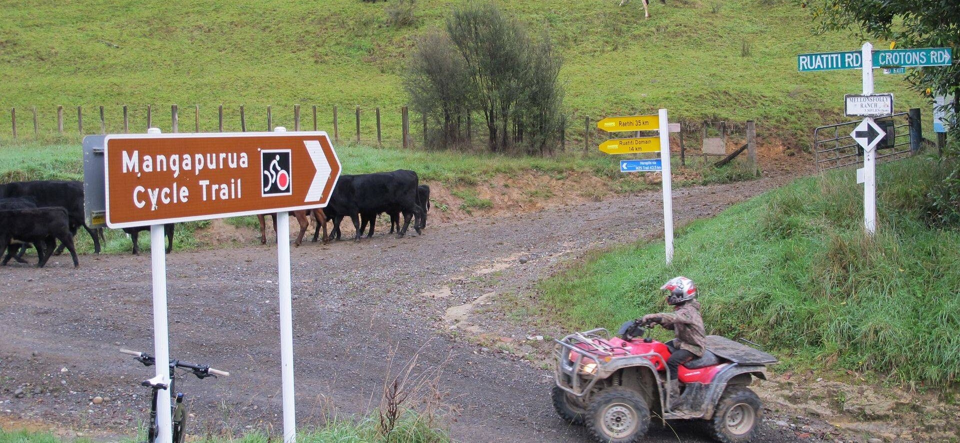 Middle-Ruatiti road connects Ohakune Old Coach Road and Mangapurua tracks. A mix of quiet rural gravel and tar sealed roads, this pathway connects you from the Tongariro National Park mountains and takes you around the edge of the Erua forest and into the edge of the Whanganui National Park.