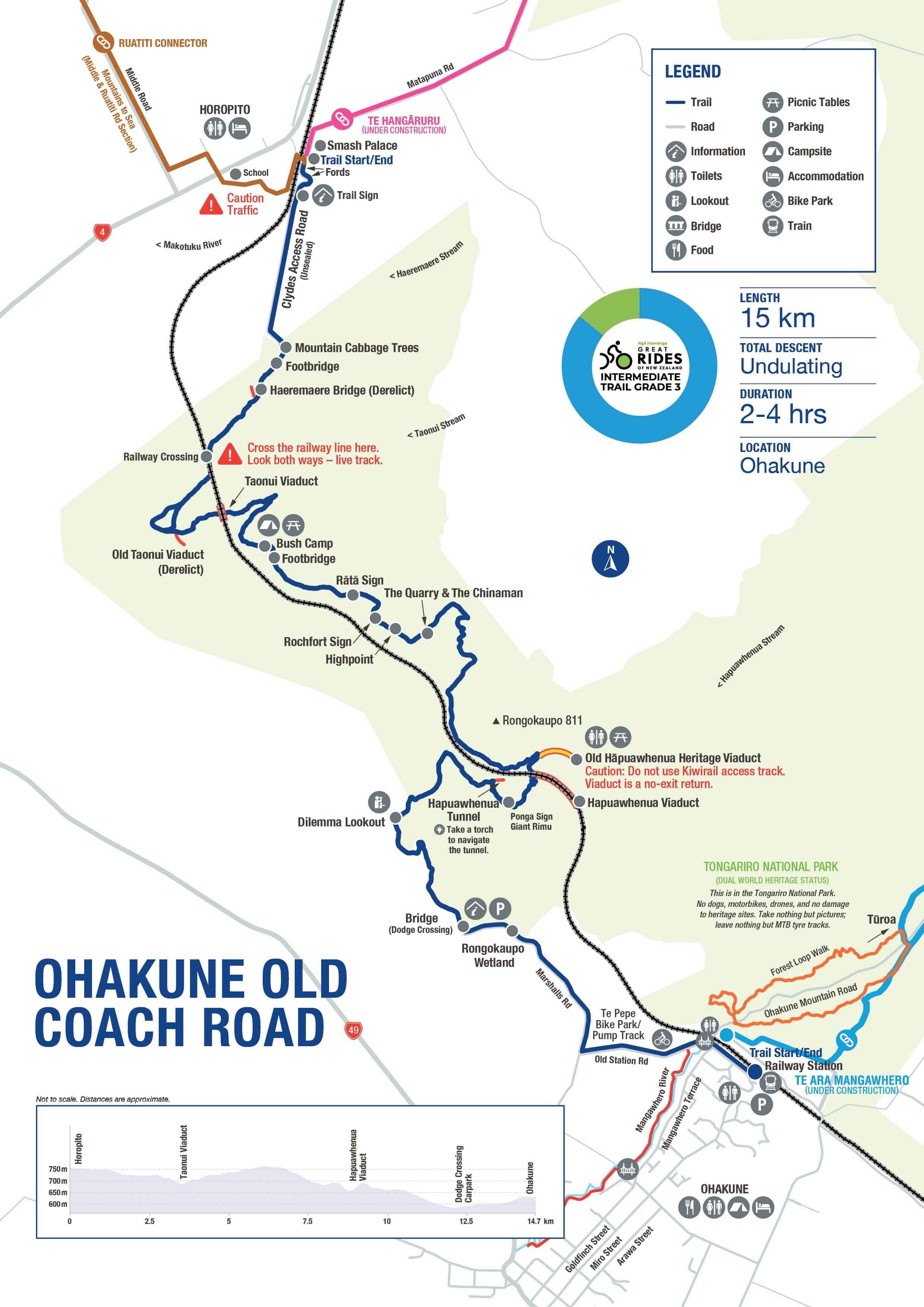 - This section of the Mountains to Sea Trail connects with the Ohakune Mountain Road at Ohakune and Middle & Ruatiti Roads